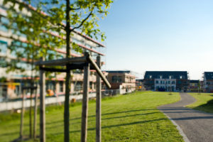 Die Bebauung folgt einer nachhaltigen Stadtentwicklung mit Fokus auf Durchmischung, Aufenthaltsqualität und Grünanteil.
